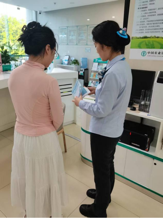 王同学拿着手中的录取通知书表示要开立一张银行卡用于缴纳学费,得知客户需求后,小宋拿出反诈宣传手册,向女生展示最新诈骗案例强化设诈警示教育,经核实开卡用途后,小宋以极高地效率为客户开立银行卡,并手把手教她通过农行掌银扫码支付:"切记要认准官网渠道,任何要求私下转账的'老师''学长'都可能是骗子。"随后又赠送了《反诈金融安全手册》,扉页上印着支行专属的7×24小时咨询热线。"这是农行为高校学子开通的绿色通道,遇到任何资金疑问随时可以拨打电话。"让客户沉浸式接受反诈宣传教育。最后,小宋将农行反诈定制小手册放入王同学书包——"莫贪便宜守钱袋,天下没有免费餐"的烫金字样在阳光下熠熠生辉。